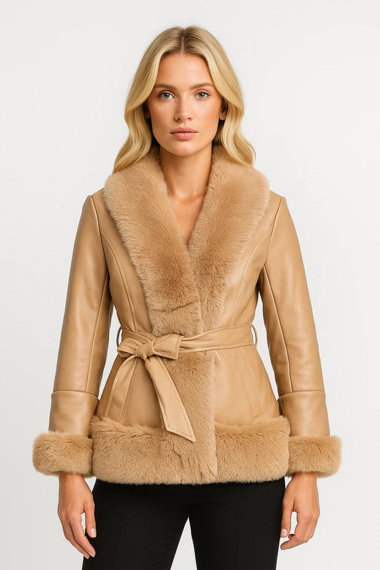 Elegante Damesjas | Getailleerd Model met Ceintuur | Warme Vachtlook Afwerking
