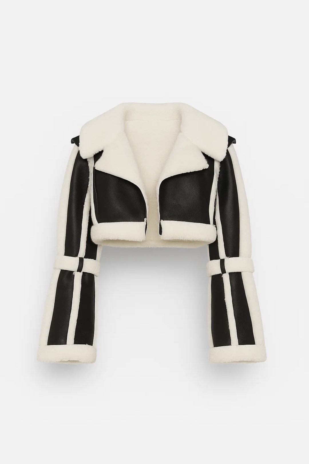 Deze cropped jas met opvallende contrastdetails en gespen is een echte blikvanger voor het koudere seizoen. De zachte voering zorgt voor warmte, terwijl het korte model een moderne, stoere uitstraling biedt.
