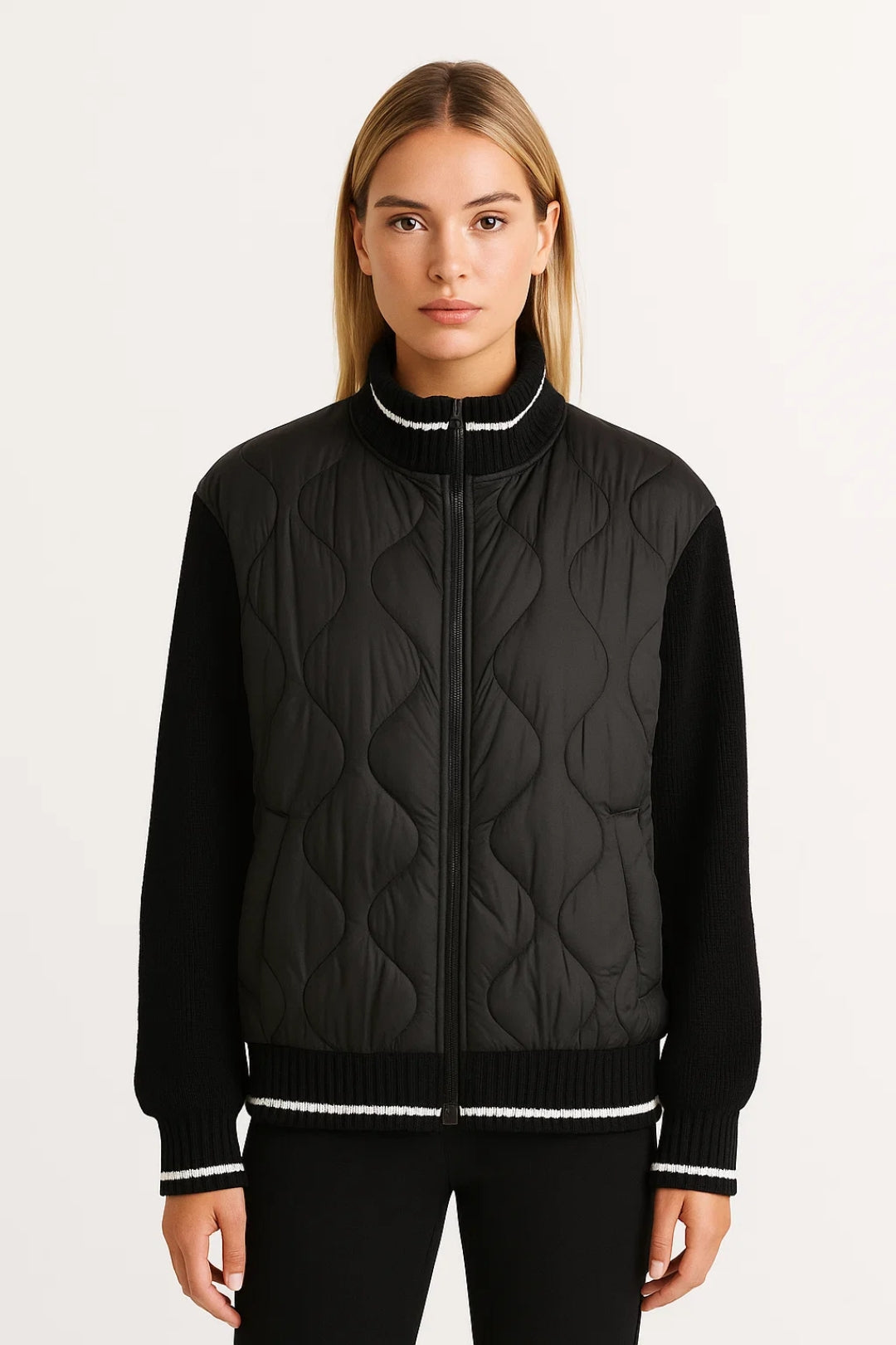 Damesjas | Gewatteerde Jas met Gebreide Mouwen en Ritssluiting | Modern en Comfortabel