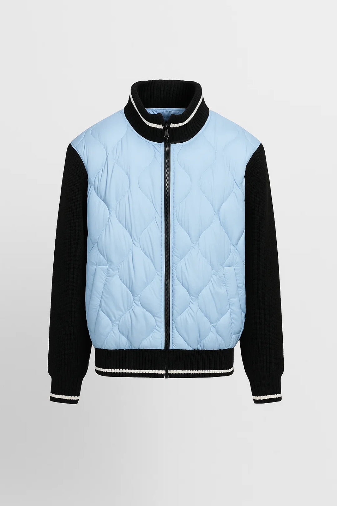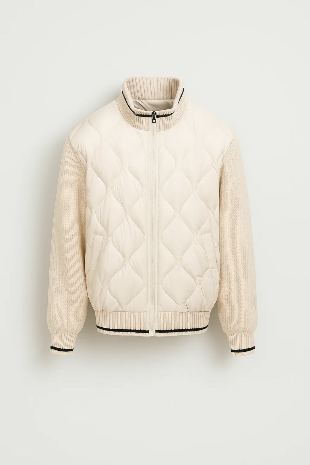 Deze eigentijdse jas met gewatteerd voorpand en gebreide mouwen is een perfecte mix van sportief en chic. De subtiele structuur en comfortabele fit maken dit een ideale keuze voor dagelijks gebruik in het tussenseizoen.
