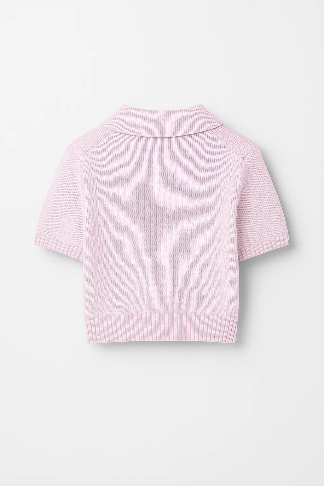 Dit korte damesvest met striksluitingen en zachte textuur is perfect voor wie houdt van een vrouwelijke, luchtige look. Het polokraagje en de korte mouwen maken dit item geschikt voor laagjes in de herfst of als licht jasje in de lente.