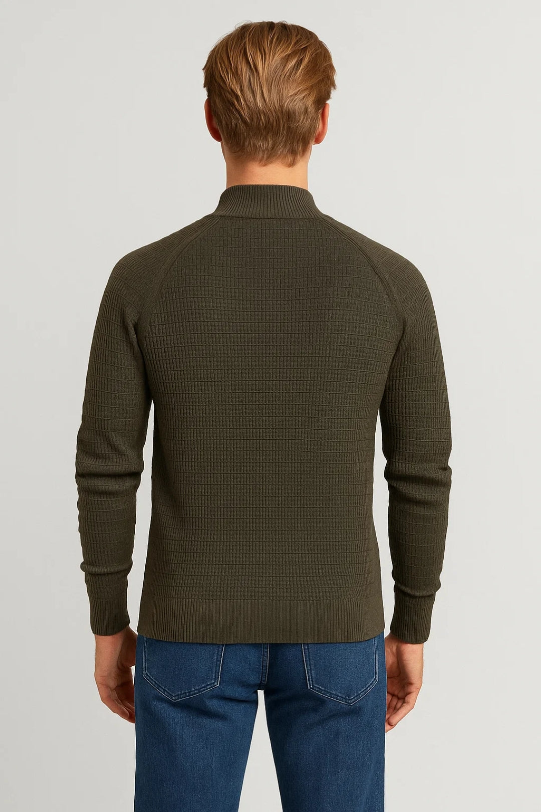 • Kenmerken: Opstaande kraag, gestructureerd breipatroon