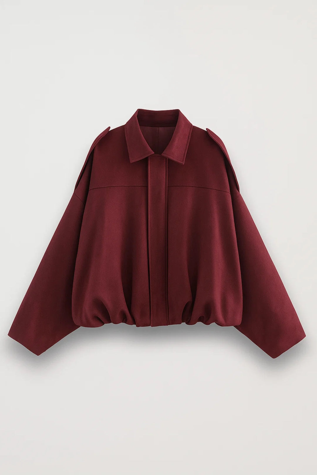 Deze korte damesjas met brede schouders en elastische onderzoom biedt een moderne, losse pasvorm die ideaal is voor het tussenseizoen. De strakke afwerking en ingetogen kleur maken dit een tijdloos kledingstuk.