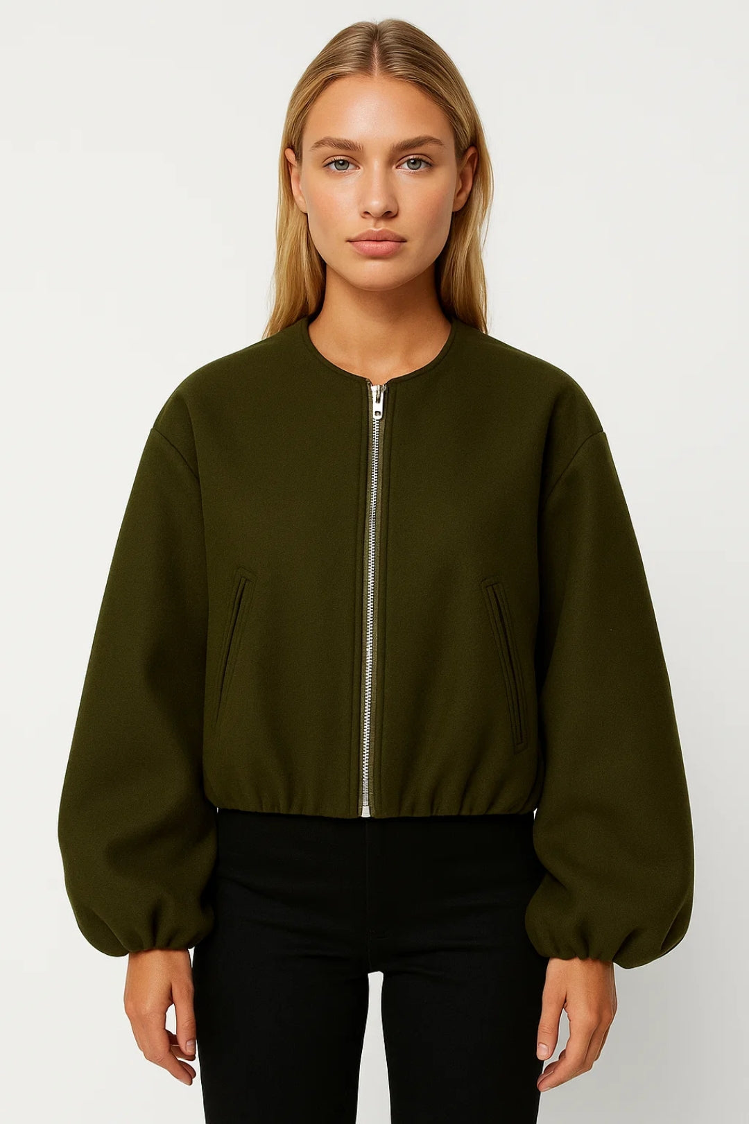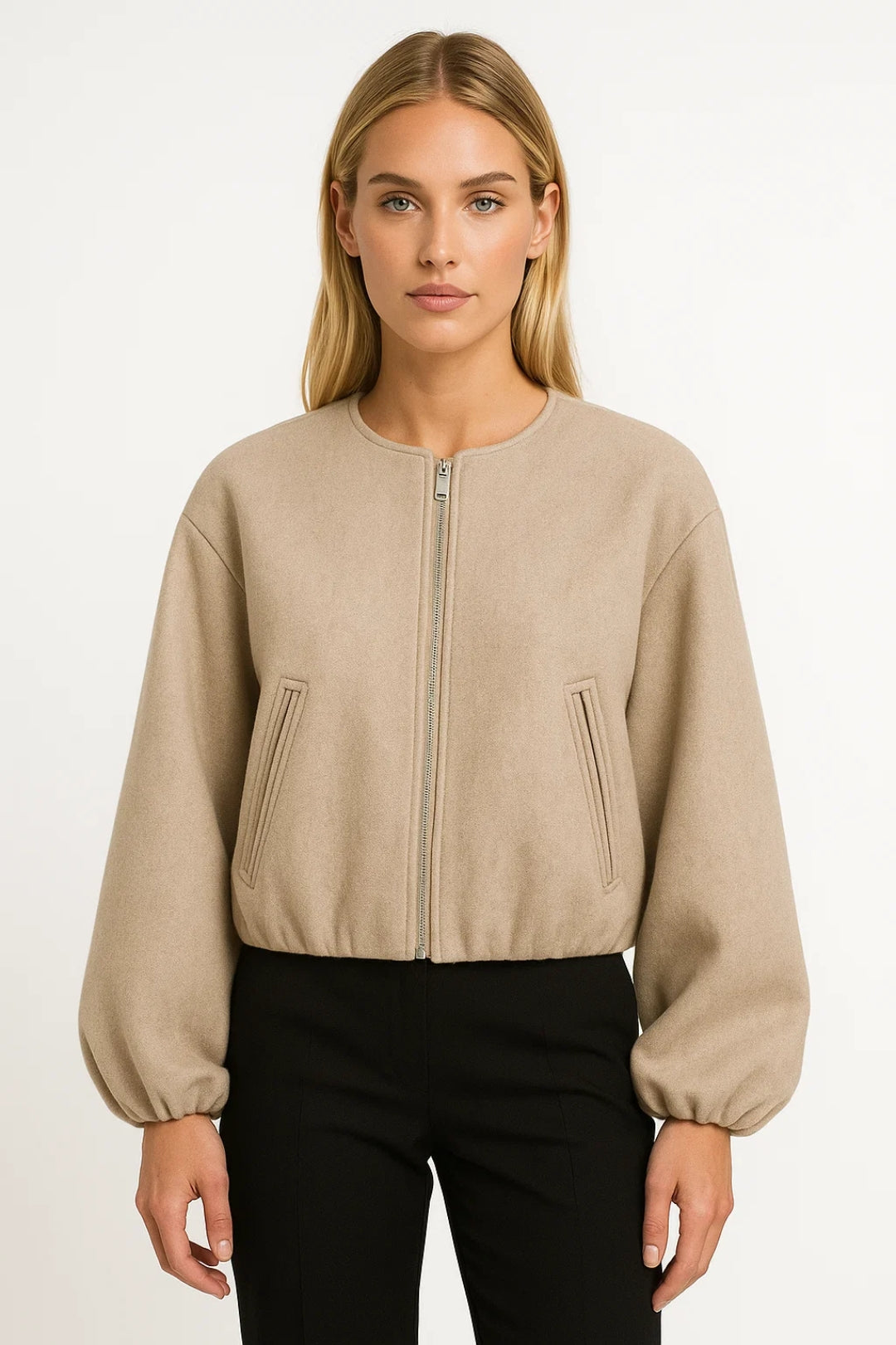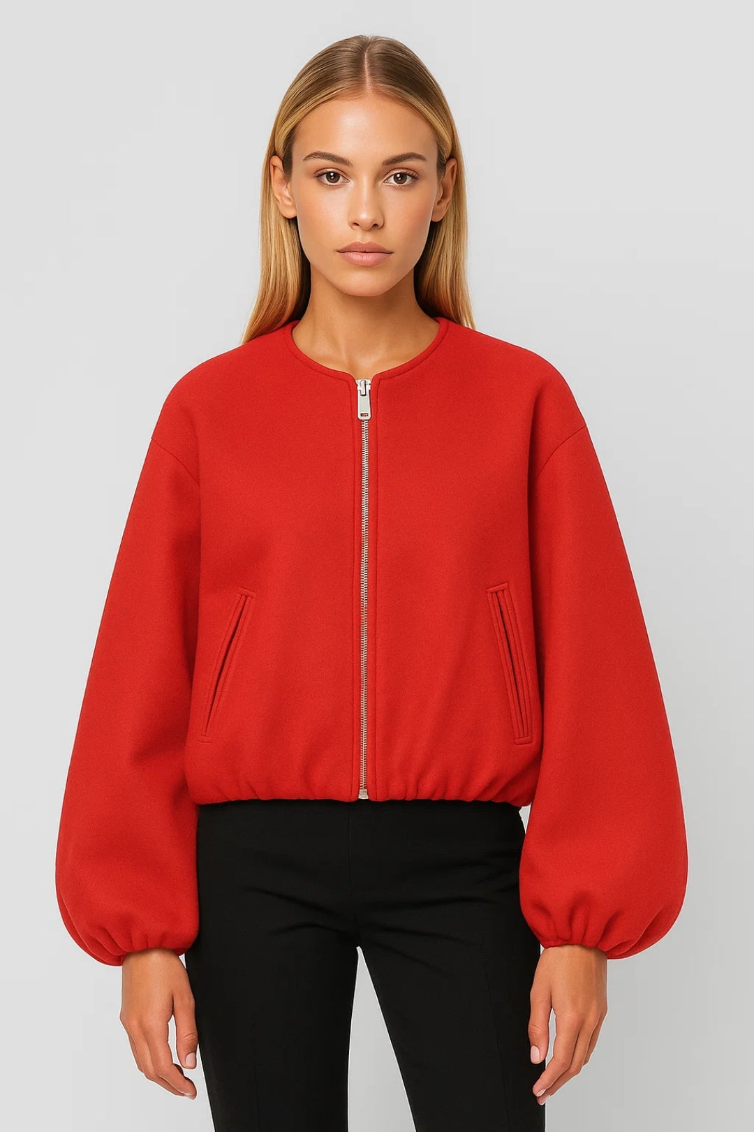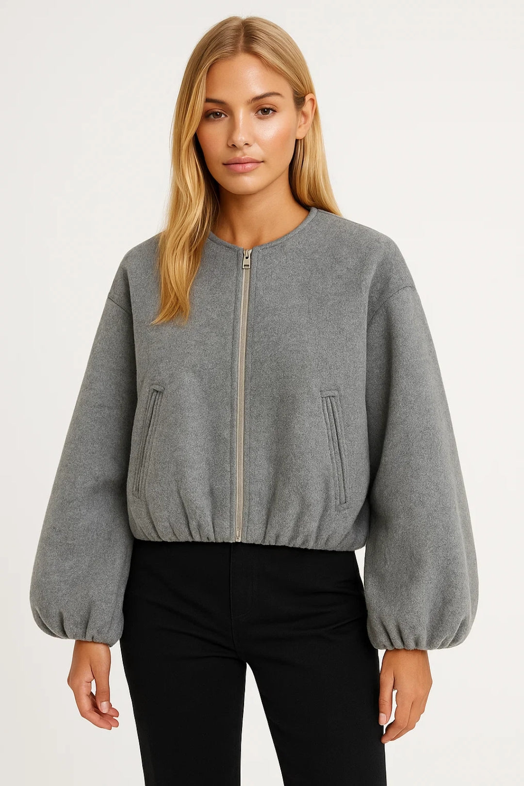 Korte Damesjas | Ritssluiting en Pofmouwen | Strakke Minimalistische Look