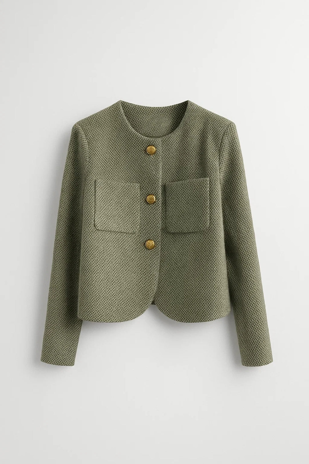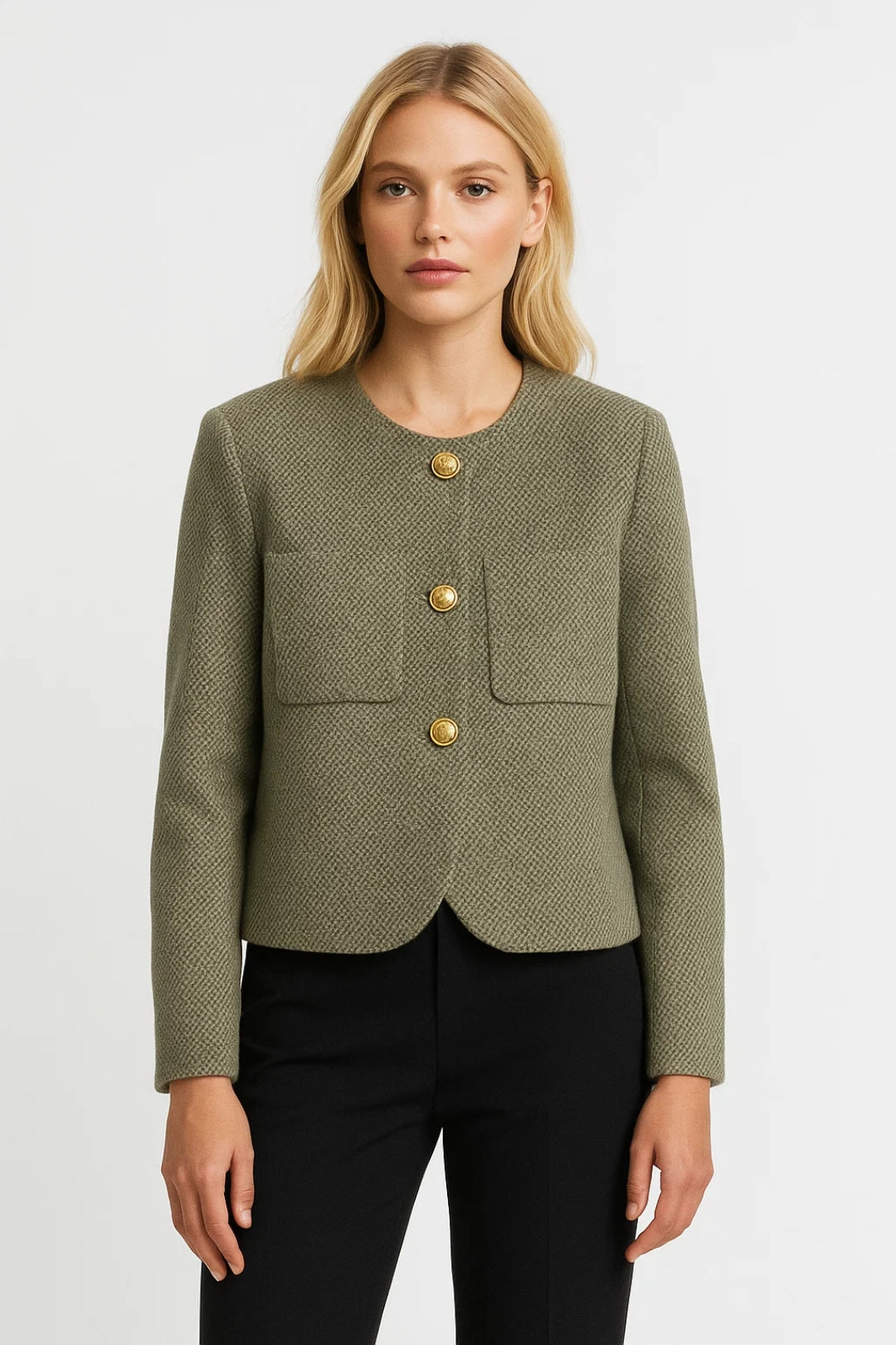 Korte Damesjas | Ronde Halslijn met Gouden Knoopsluiting | Verfijnde Look