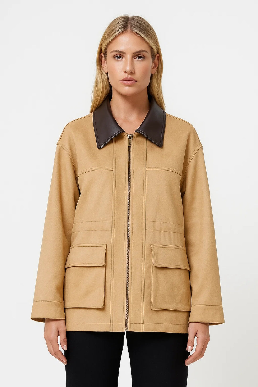 Lichte Jas | Contrasterende Kraag en Opgestikte Zakken | Tijdloos en Functioneel