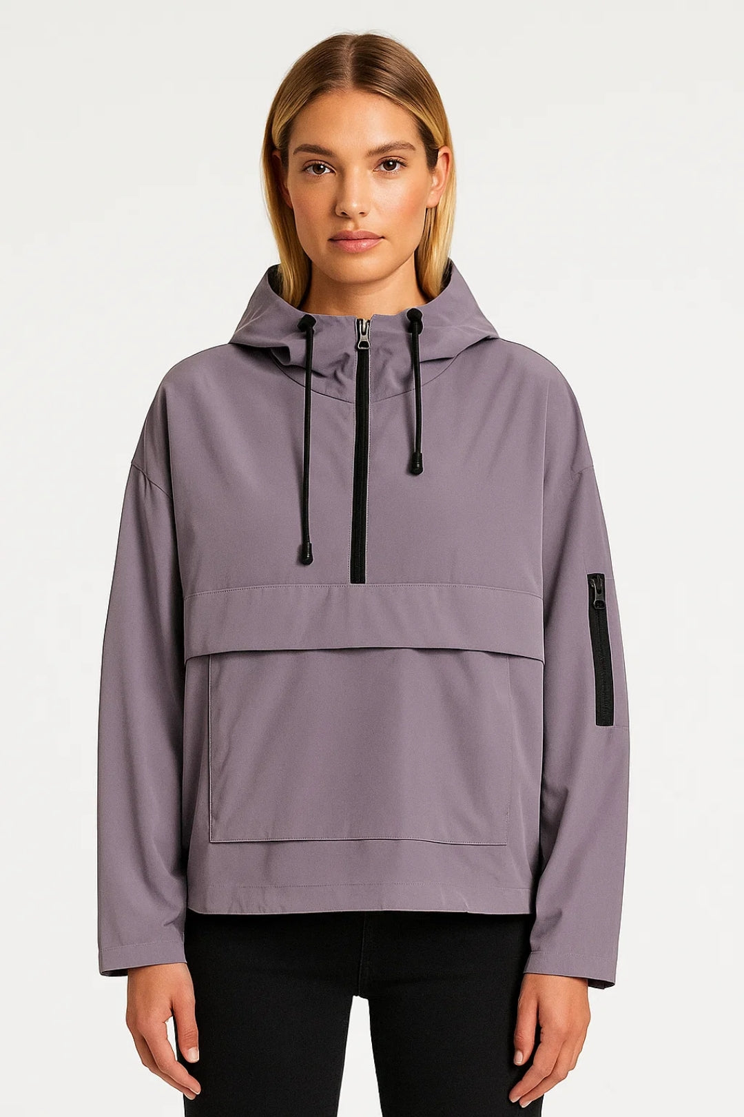 Deze lichtgewicht damesjas met korte ritssluiting en capuchon is ontworpen voor comfort en functionaliteit. De ruime kangoeroezak en verstelbare details maken het ideaal voor dagelijks gebruik.