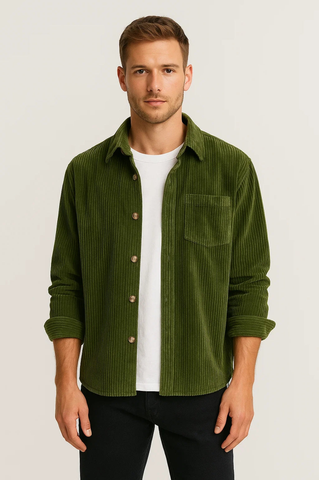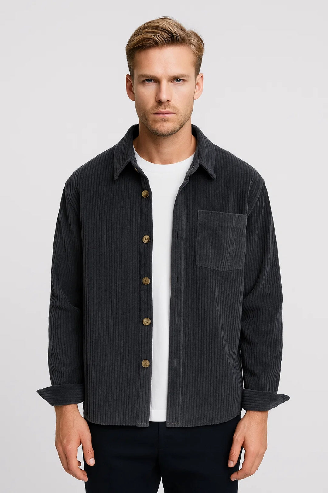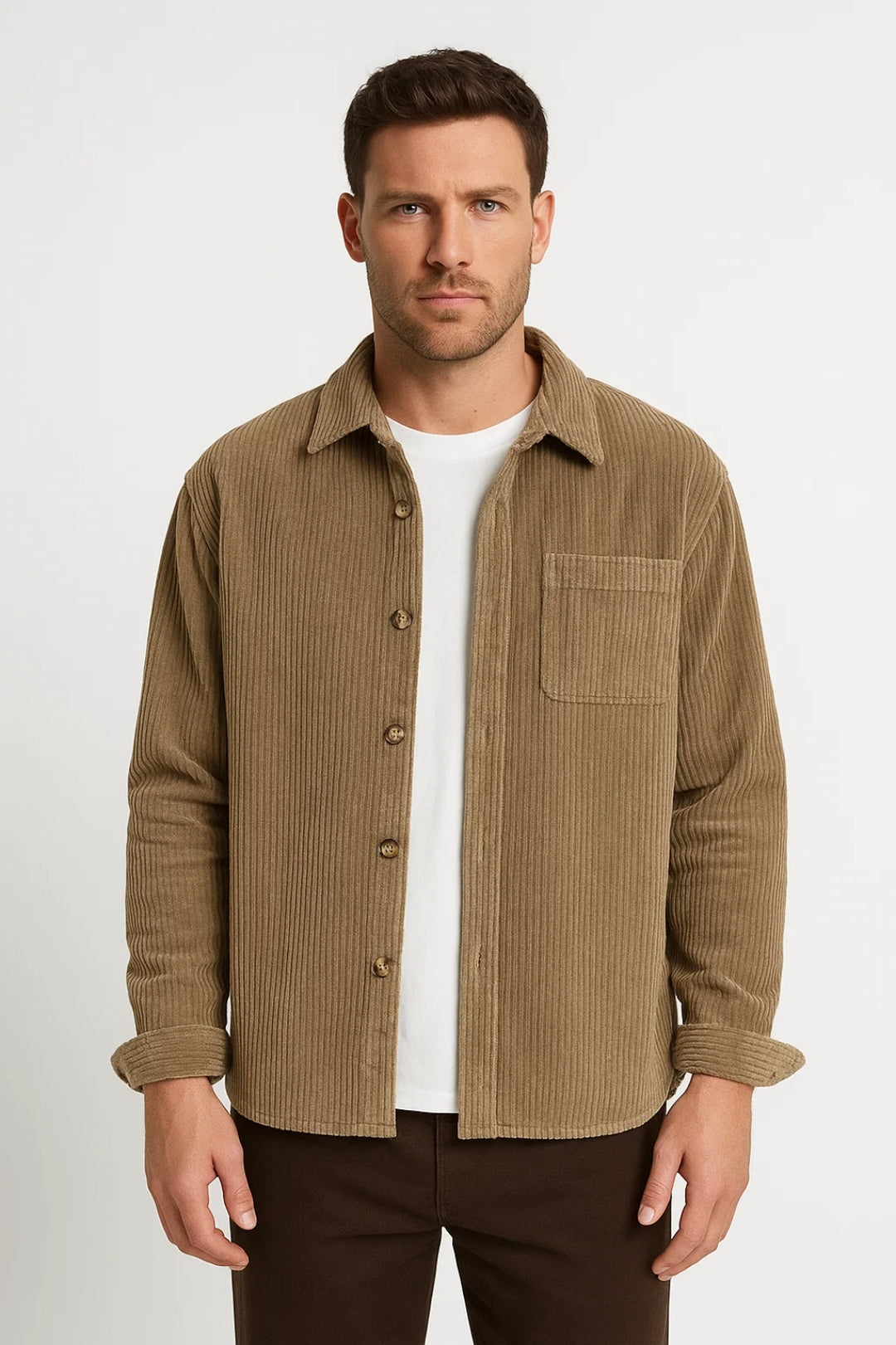 Dit corduroy overshirt voor heren is ideaal als licht jasje of als extra laag over een T-shirt. De fijne ribstructuur en klassieke knoopsluiting geven het een tijdloze uitstraling.