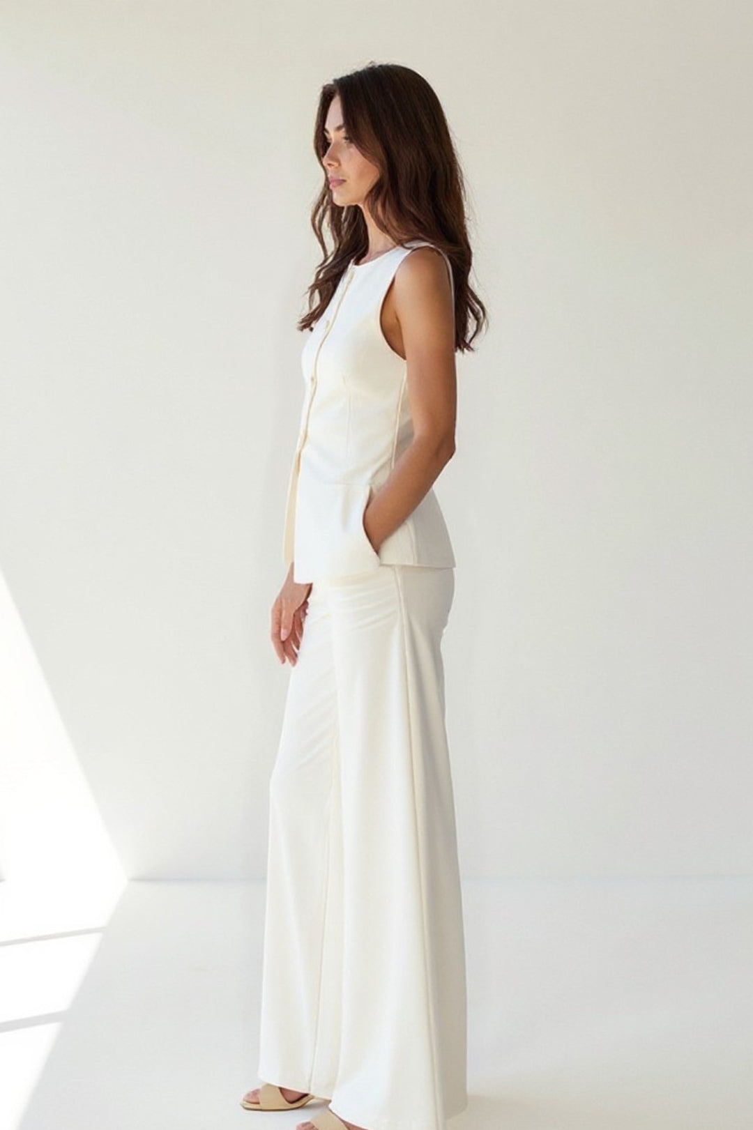 Witte Broekenset | Mouwloos Gilet met Wijde Pijpen | Stijlvol & Minimalistisch